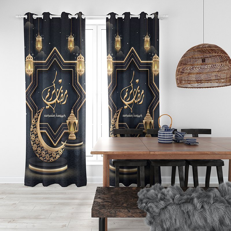 ستارة اسود رمضان النجمه مطبوعة على خامات بجودة عالية، ألوان ثابتة تضيف لمسة فخامة لأي مساحة. متوفرة بمقاسات متعددة وسهلة التركيب تناسب جميع الديكورات للمنازل و الفنادق و المكاتب الادارية و العيادات.