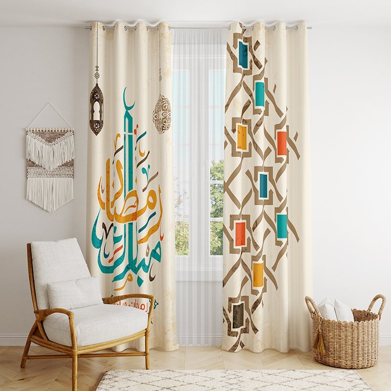 ستارة بايج رمضان ملون مطبوعة على خامات بجودة عالية، ألوان ثابتة تضيف لمسة فخامة لأي مساحة. متوفرة بمقاسات متعددة وسهلة التركيب تناسب جميع الديكورات للمنازل و الفنادق و المكاتب الادارية و العيادات.